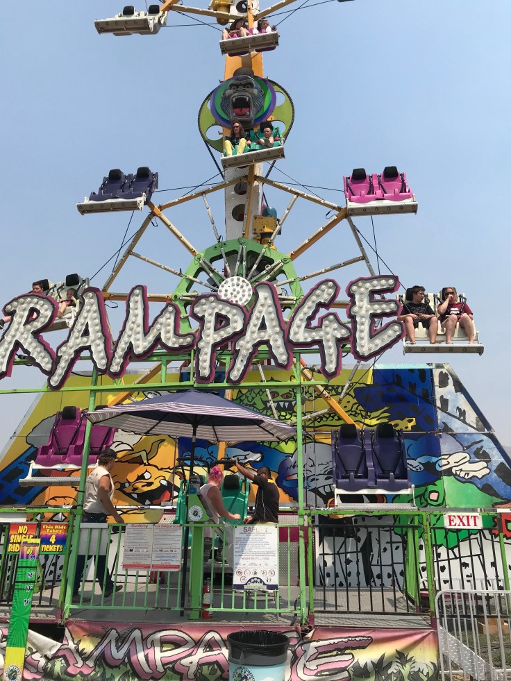 Now you should all know that Shawnda is not much for carnival rides, the spinning kind any way. So in good form I went off to ride the Ferris wheel with Addy and Alex wrangled Shawnda into going to ride the Rampage
