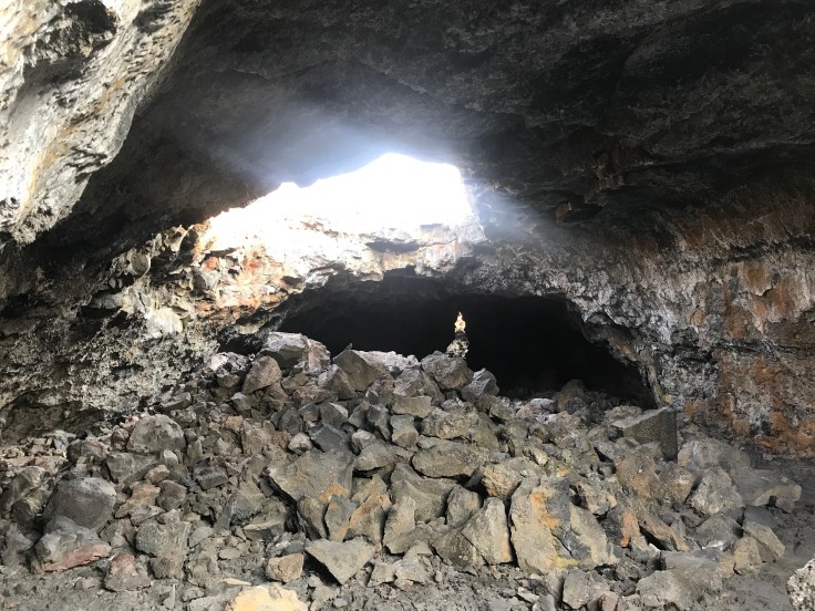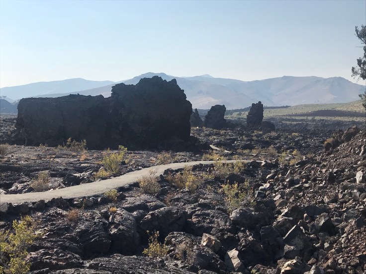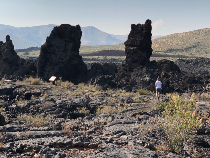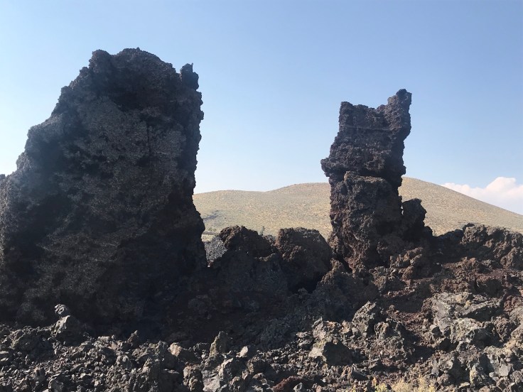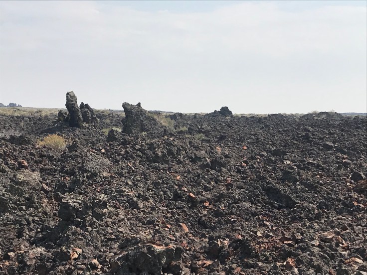 Craters of the Moon National Monument that is. As you approach you start to see the Barron wasteland of volcanic rock as far as you can see. Along the prairie volcanos rose out of nowhere and form some of the most spectacular geological formations we have seen yet.