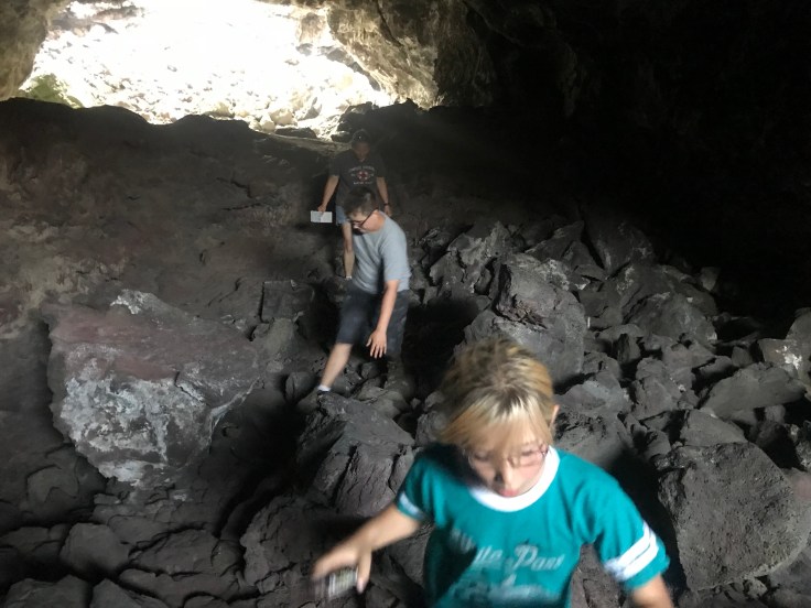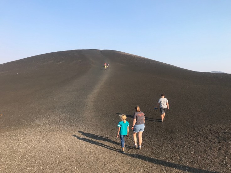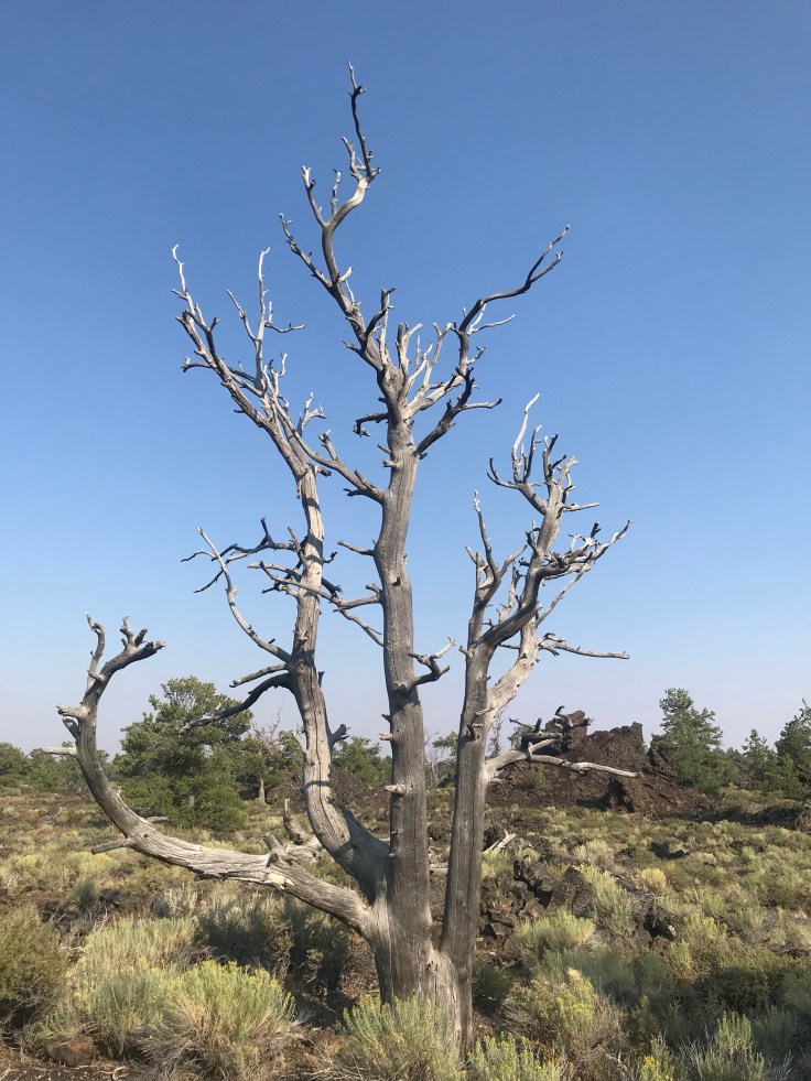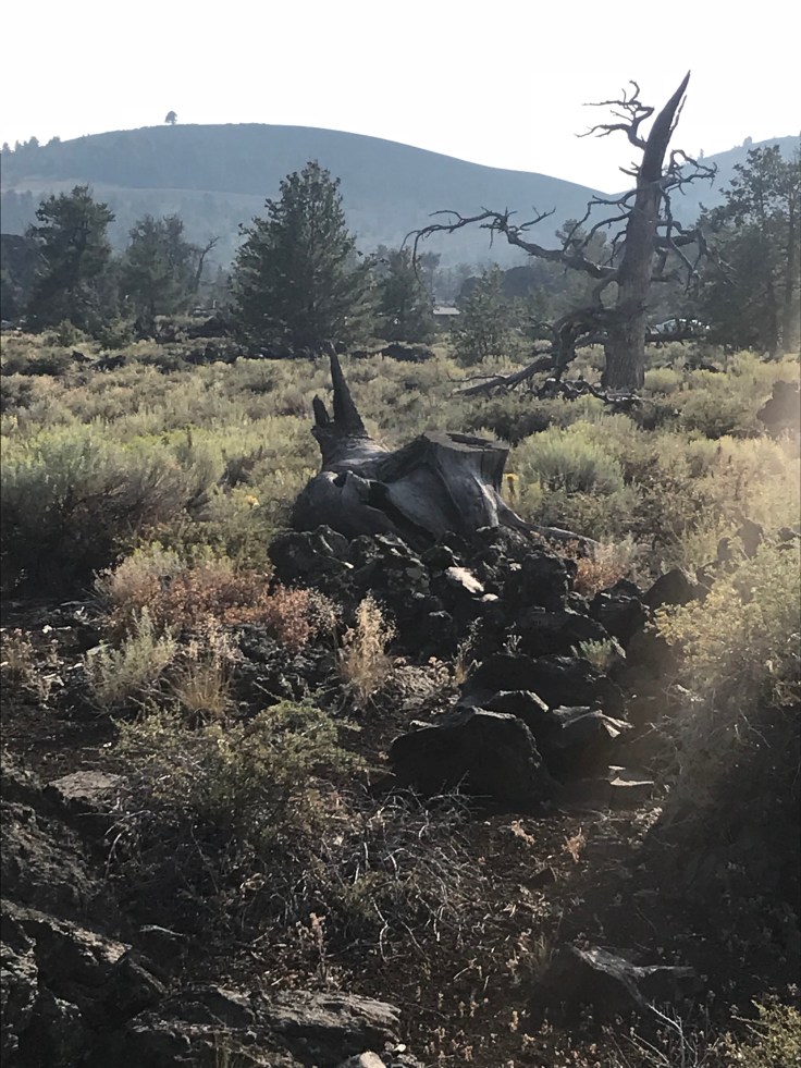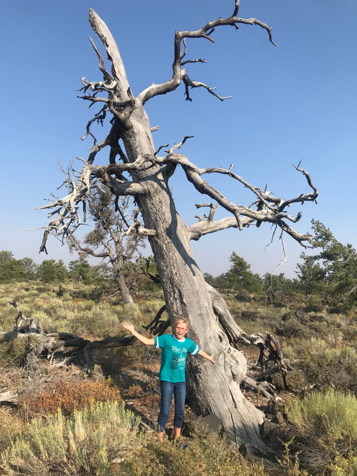 Now dead trees and sage brush is not quite enough to keep a kids interest. Climbing to the top of a lava cone? Yeah that will do. This is probably the most spectacular 360 view in the park and is the highest point.