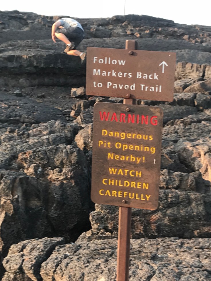 Now all the hiking in the park is on trail except for a few places and for good reason. Even though it is lava rock the environment is fragile. So down the trail you go.