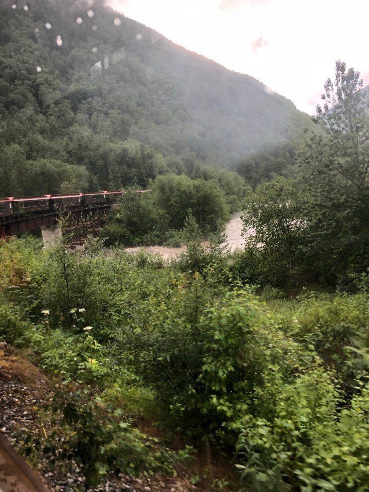 One of the planned highlights of our trip through the Yukon was to ride the White Pass & Yukon Route train line. Now this is a train line that is over 100 years old and though it is maintained it is not for those who are accustomed to the red line in Boston.
